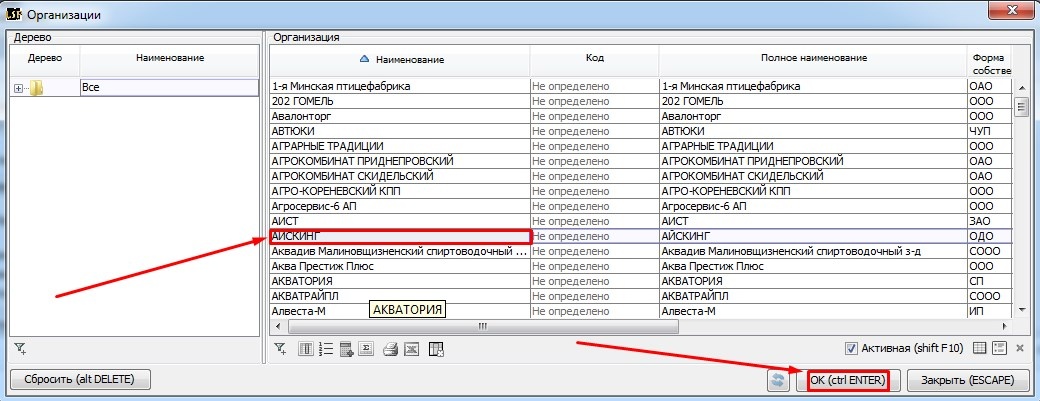 - По кнопке F8 откроется список Поставщиков, где мы должны найти нашего контрагента и выбрать его двойным кликом либо кнопкой "ОК".