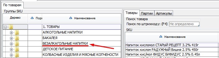 | На форме так же можно отображать список товаров в разрезе партий и по артикулам: |