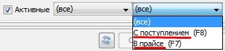 в прайсе - фильтр отбирает товары, которые имеются в согласованном с поставщиком прайсе цен (ПСЦ).