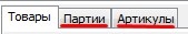 *Примечание: на форме так же можно отображать список товаров в разрезе партий и по артикулам:
