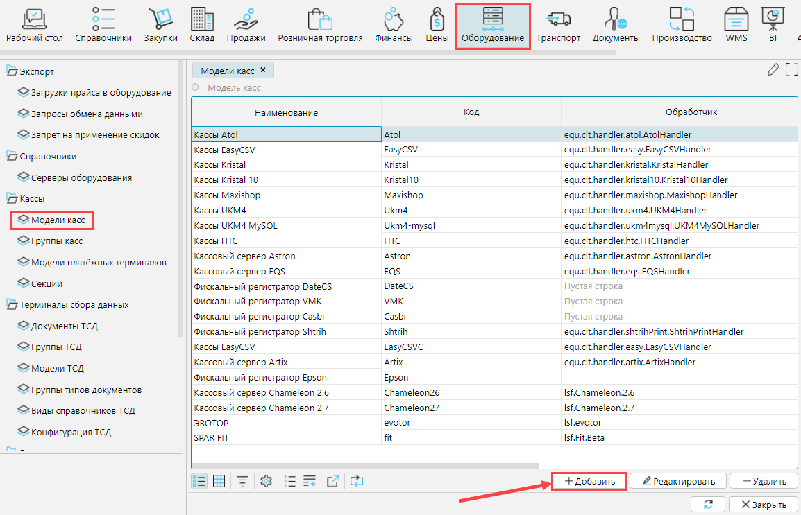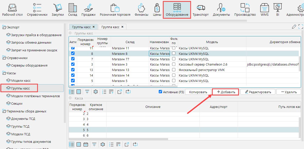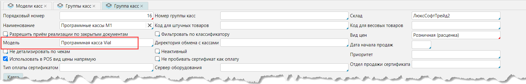 Основные настройки программной кассы регламентируются конфигурационным файлом и настройками в «Оборудование – Группы касс».