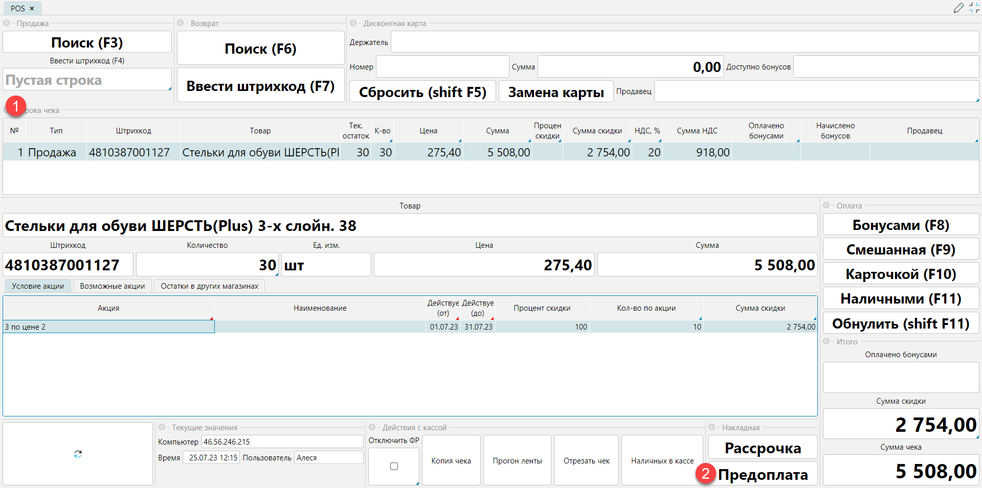 Если у вас договорные отношения с покупателями и они вносят предоплату за товар, выписать данный товар по предоплате можно на кассе.