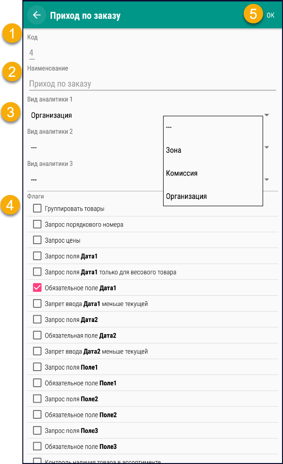 Таблицу флагов и их значения можно изучить в статье Настройки для ТСД в системе.