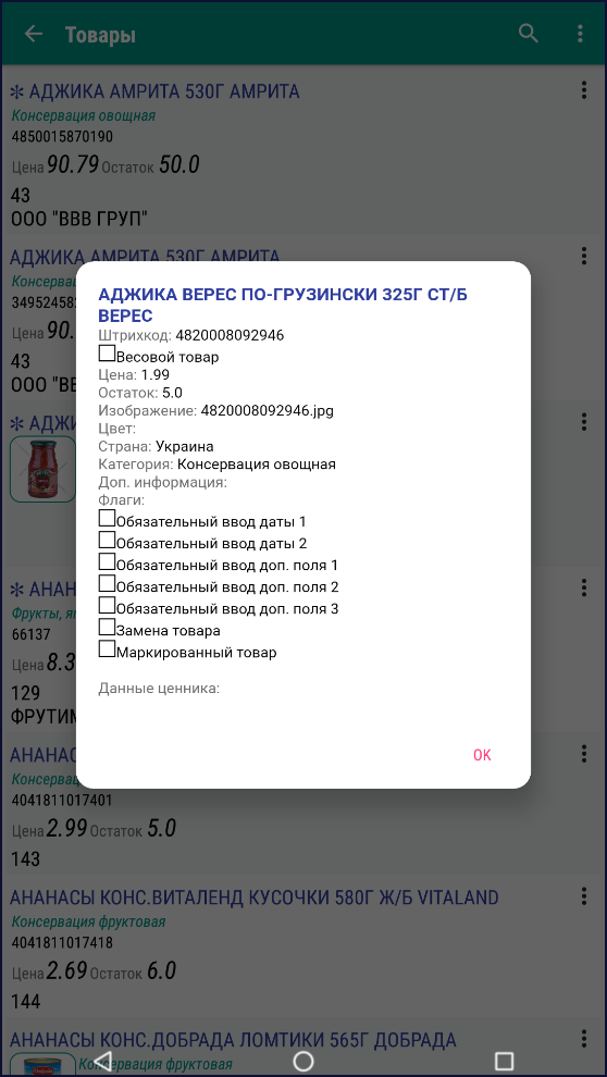 В справочник товаров загружаются товары из учетной системы и их атрибуты в соответствии с настройками. По умолчанию товары отображаются в алфавитном порядке.