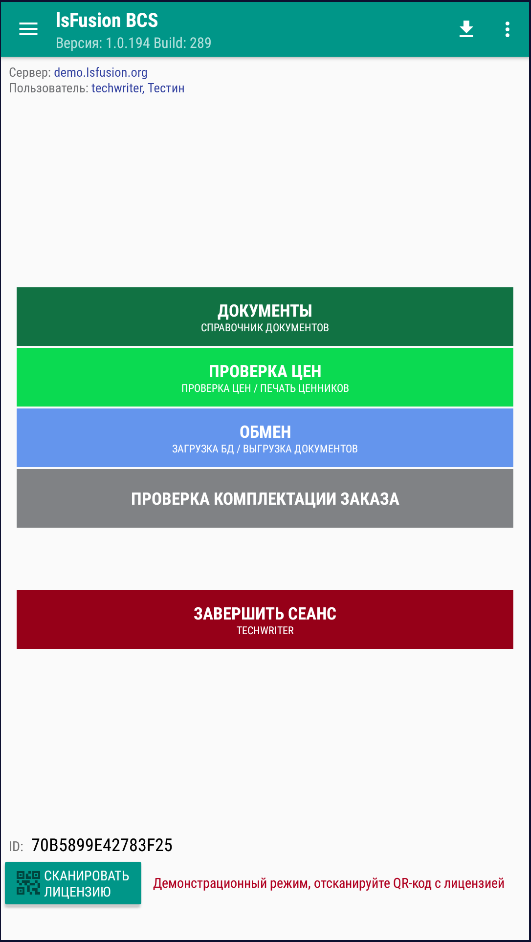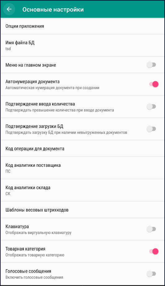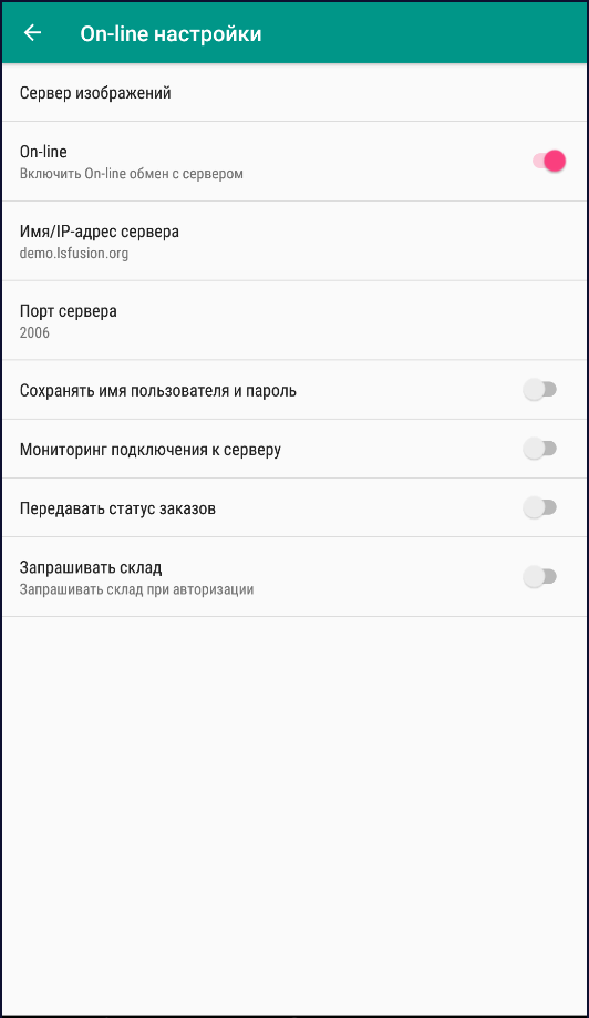 • On-line – данный переключатель включает дополнительный интерфейс и механизмы для работы ТСД в режиме On-line (загрузка БД, выгрузка документов через сокет).