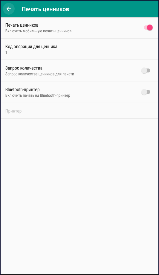 • Печать ценников – включает механизм печать ценников на Bluetooth-принтер