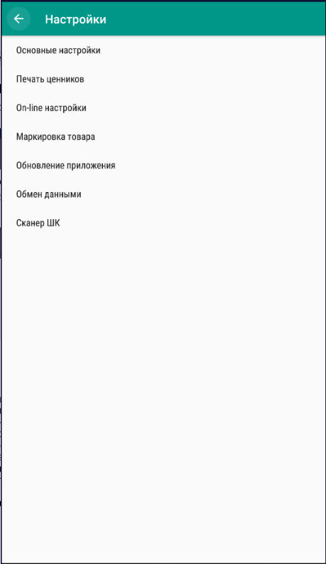 • Сканер ШК – настройки сканера штрих кода