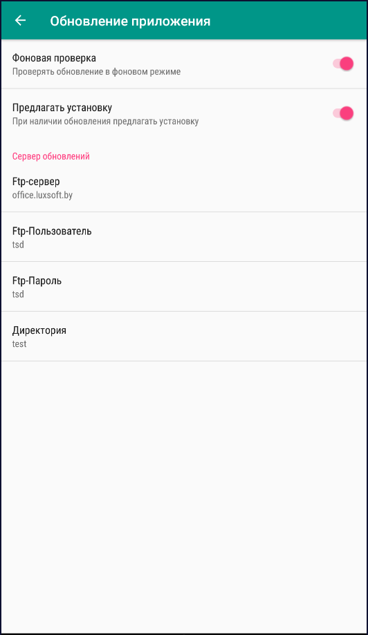 • Обновление приложения – настройки обновления модуля