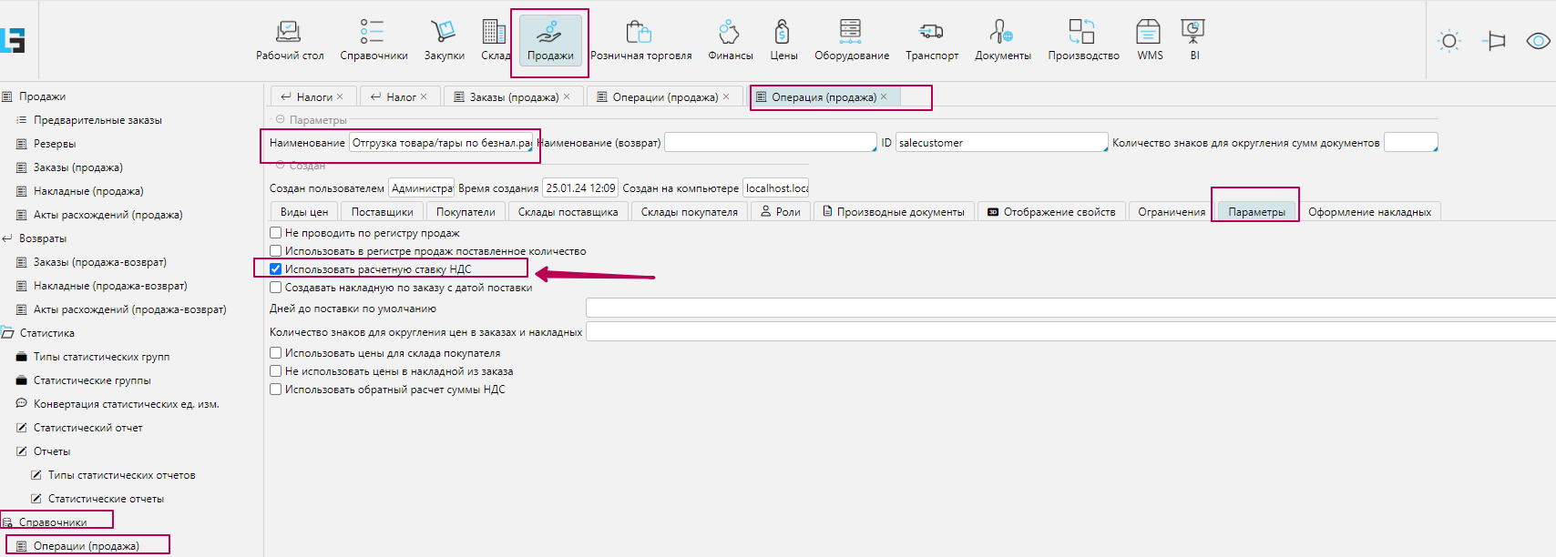 Вкладка "Параметры" поставить признак "Использовать расчетную ставку НДС" нажать кнопку "Сохранить" внизу формы.
