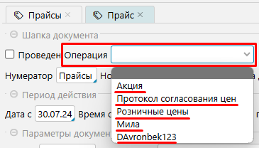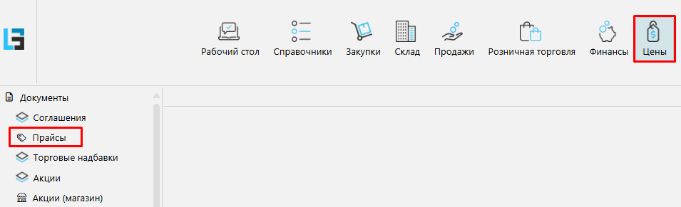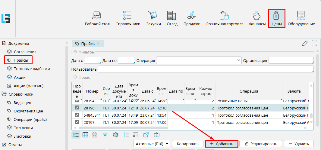 Для создания Прайса необходимо зайти на форму Цены\Документы\Прайсы