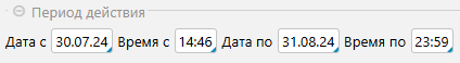 В поле "Период действия" вносим "Дата с" и "Дата по"