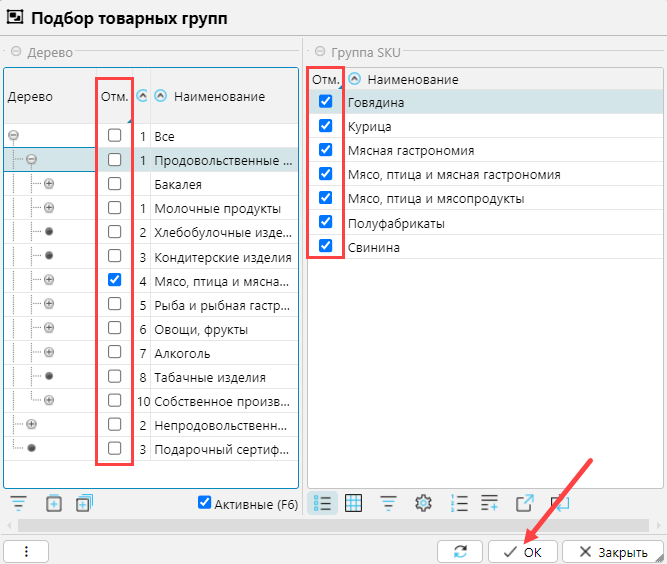По группам - откроется окно, где нужно отметить группы товаров и программа проверит соответствие розничной цены только по товарам выбранных групп (проверка и по прайсам, и по надбавкам)