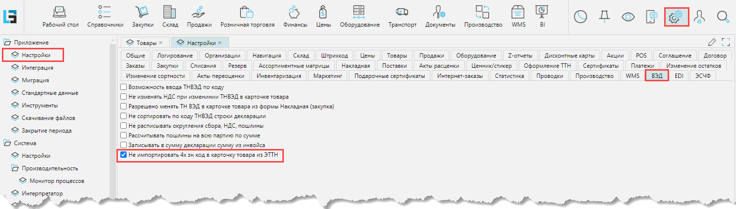 6. Через накладную EDI. По умолчанию при импорте из электронной накладной для товара, у которого не заполнен 4-значный код, значение будет записано из электронной накладной. Чтобы 4-значный код не записывался из электронной накладной, на форме Администрирование - Настройки - ВЭД нужно отметить признак Не импортировать 4-зн код в карточку товара из ЭТТН.