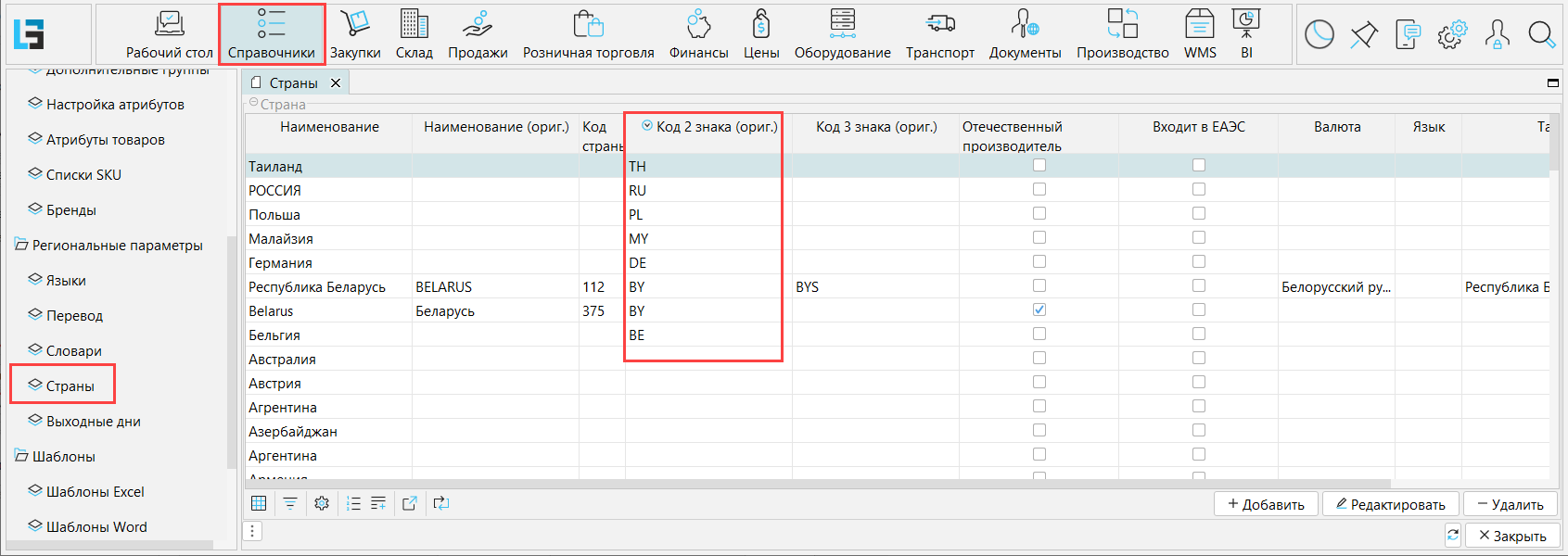 4. В справочнике стран обязательно должны быть заполнен двузначный международный код страны