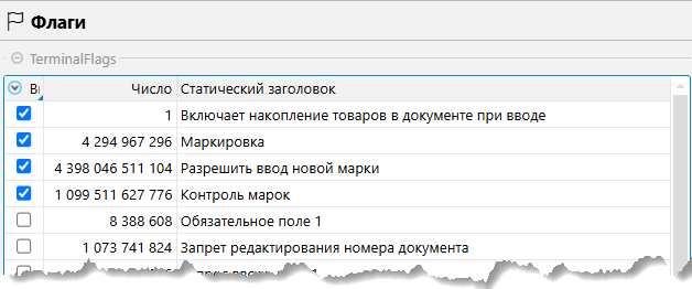 Для документов по алкогольной продукции настраиваются следующие флаги: