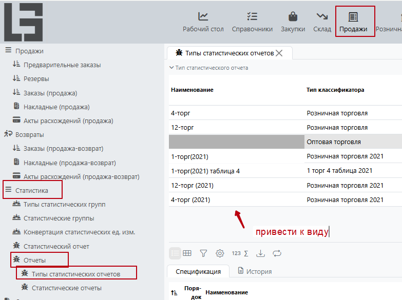 Привести наименование типов статистических (Продажи - Статистика - Отчеты - Типы отчетов) отчетов в следующий вид: