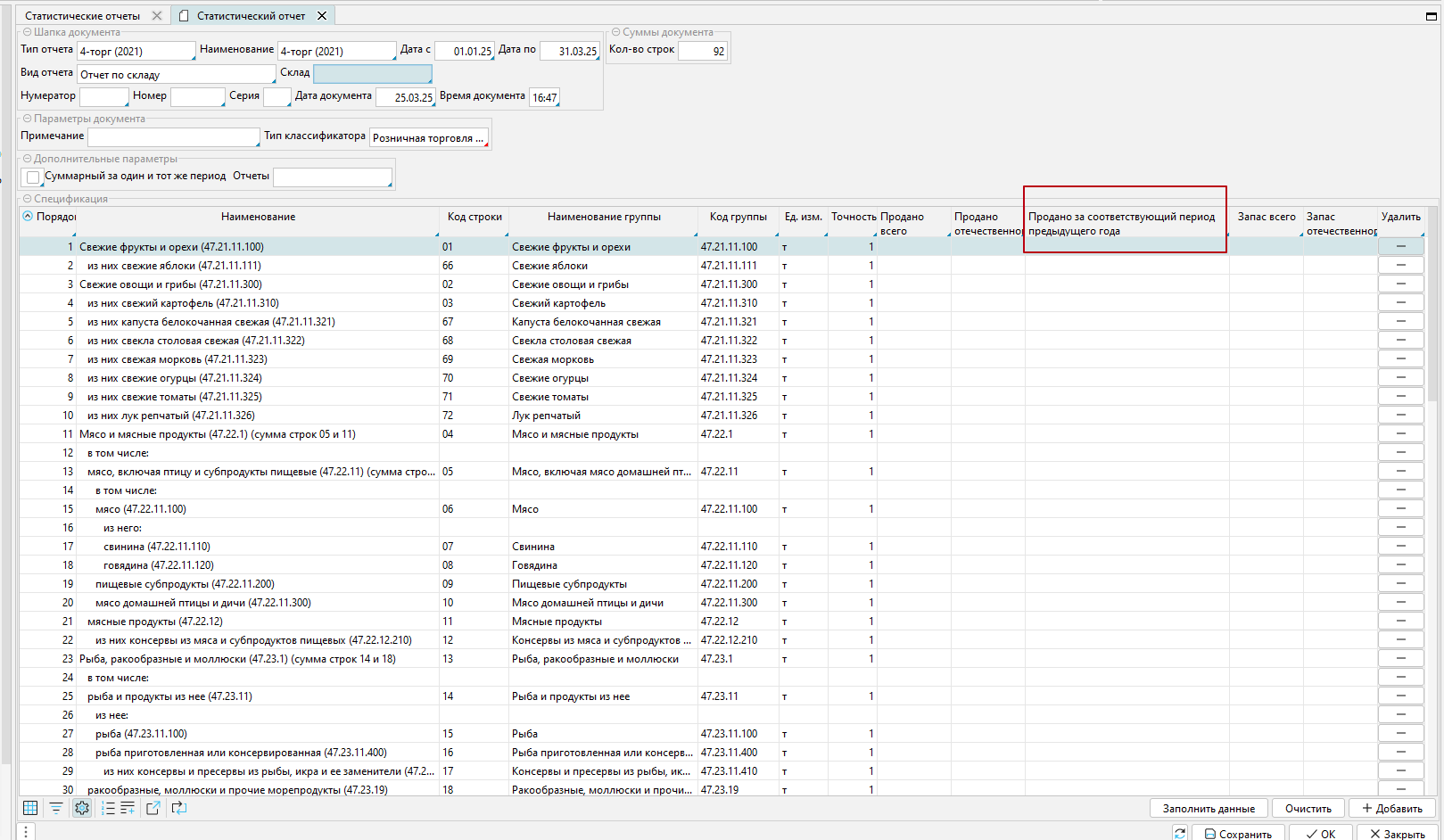 В этом случае в изменения будут внесены в существующие типы статистических отчетов, например, добавятся строки, и данные за аналогичные периоды прошлого года будут заполняться автоматически.