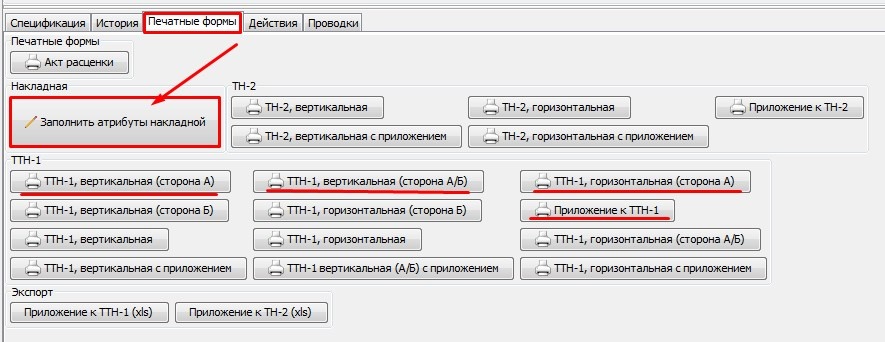 Печать ТТН осуществляется после заполнения Атрибутов накладной на форме Накладная (закупки- возврат) в закладке "Печатные формы".