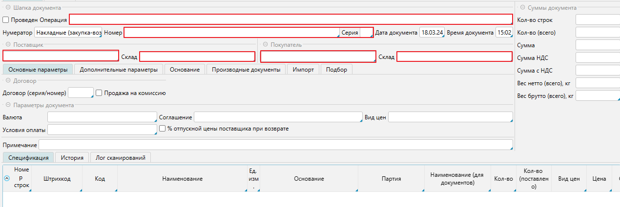 • в поле Поставщик необходимо внести наименование поставщика, которому мы возвращаем товар.