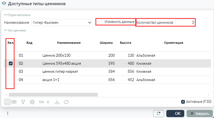 Далее мы выбираем необходимый шаблон ценника и нажимаем ОК.