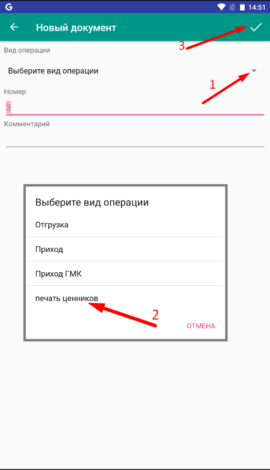 На терминале сбора данных (ТСД) необходимо создать и выгрузить в систему документ Печать ценников со списком товаров, на которые надо напечатать ценники.