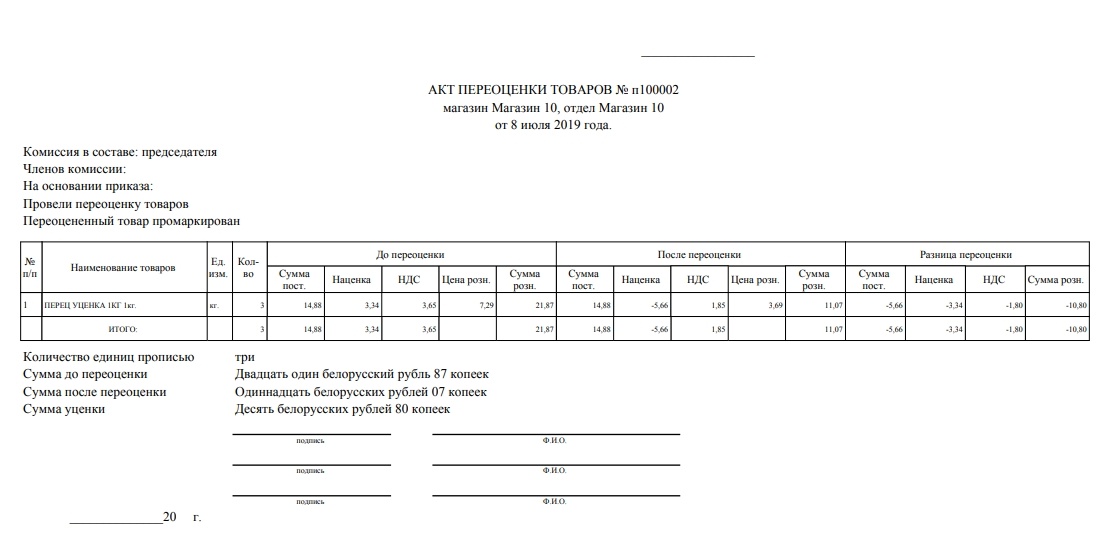 Наименование (приход) - в этом поле указывают товар, который получают в результате изменения сортности. Если это операция уценки товара, то поле может заполнятся автоматически.