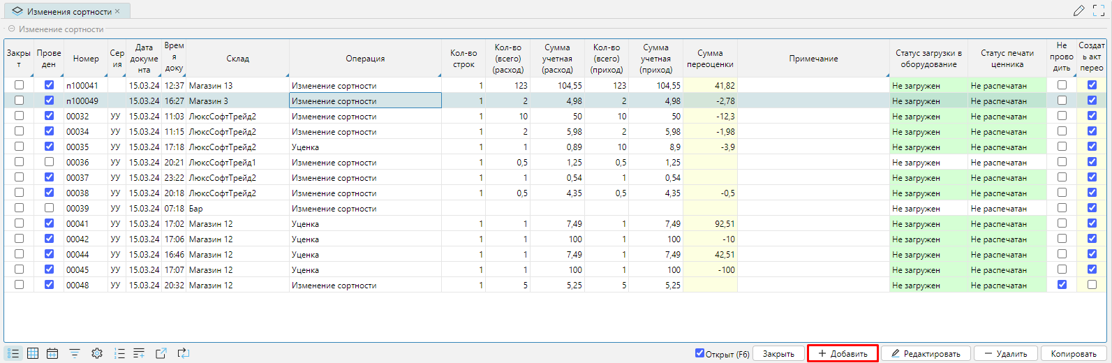 Документ "Изменение сортности" служит для возможности осуществления изменения сортности товарных позиций на торговом объекте. Чаще всего изменение сортности используется для уценки товаров. Однако это не единственный вариант, изменение сортности может использоваться и наоборот, для повышения сорта товара. Также документ может использоваться для других операций, в которых списывается исходный товар, а на приход становится "новый". Особенности изменения сортности маркированного товара описаны в статье Изменение сортности маркированного товара.