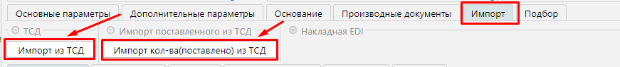 На закладке "Импорт" есть возможность импортировать данные из ТСД.