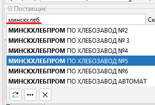 • В поле Поставщик можно внести фрагмент наименование поставщика - в предлагаемом списке отобразятся записи, содержащие введенные символы.
