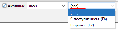 в прайсе - фильтр отбирает товары, которые имеются в согласованном с поставщиком прайсе цен (ПСЦ).