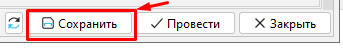 либо сохранить документ без проведения по кнопке "Сохранить".