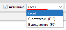 Внизу формы имеется несколько встроенных фильтров: