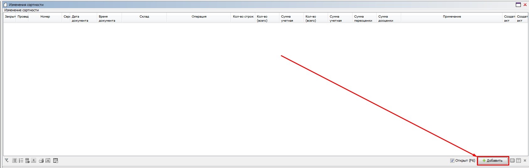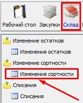 - Заходим на форму "Изменения сортности" - в модуле Склад раздел "Изменение сортности"
