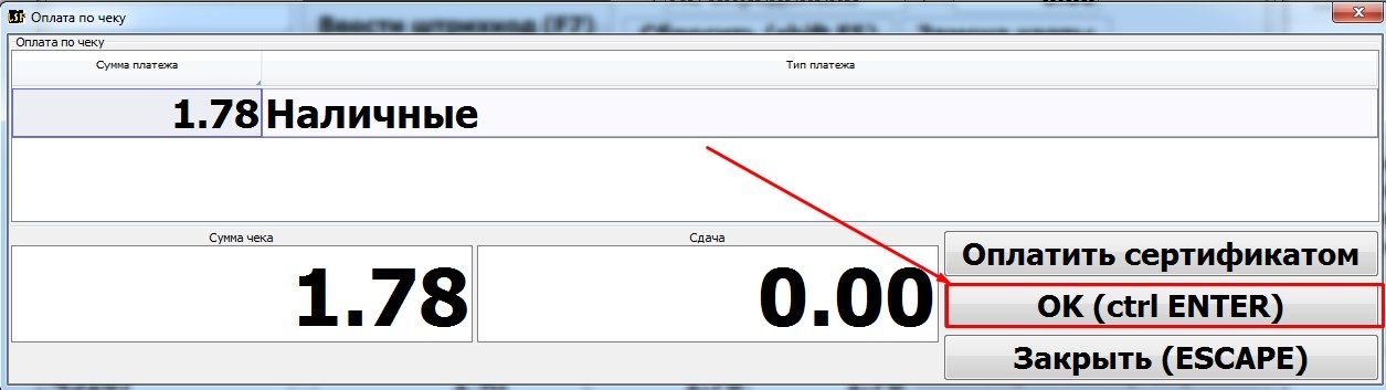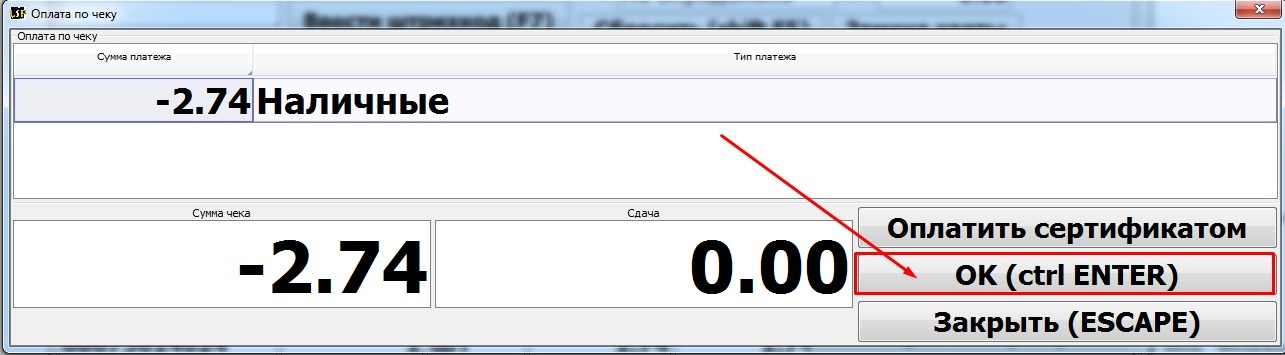 В открывшемся окне вносим сумму наличных и нажимаем ОК