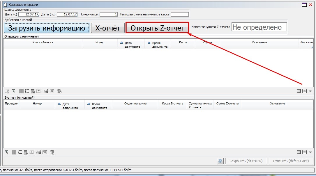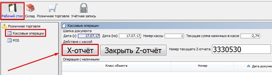 Для открытия смены на форме Кассовые операции необходимо нажать кнопку «Открыть Z-отчет».