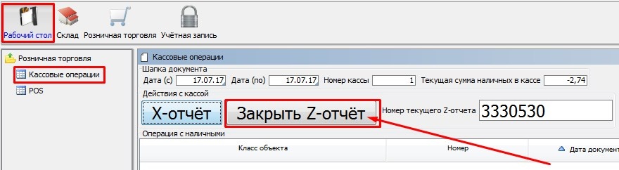 2) Закрытие Z – отчета – отчет о проделанных операциях с закрытием кассовой смены