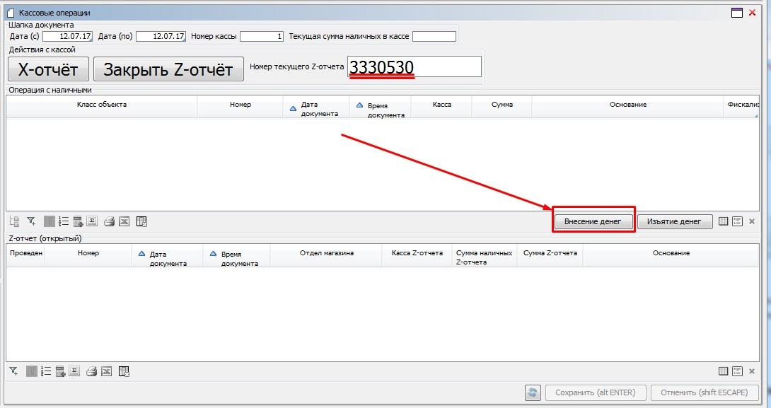 После того как смена откроется, программа присвоит ей номер текущего Z-отчета. Далее мы можем сделать внесение разменных денег в кассу.