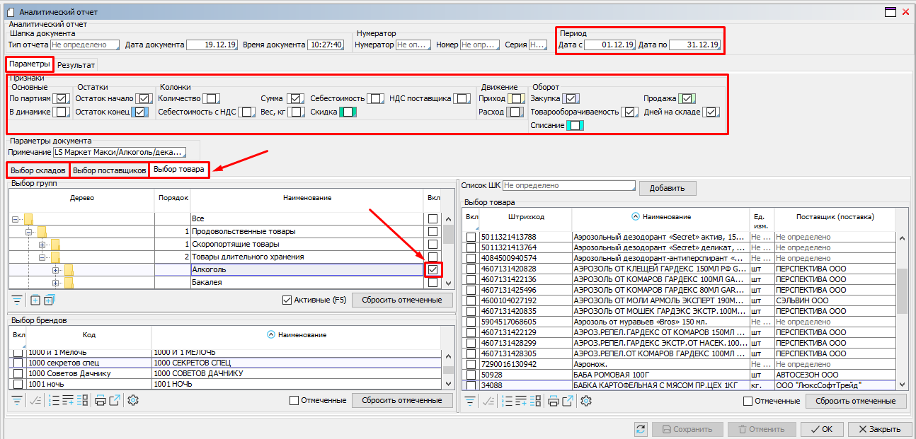 • Выбор товара - группы товаров, бренды, товары, подлежащие анализу.
