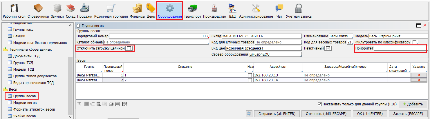 Настройка групп весов во многом аналогична настройке для групп касс (рис. 1.). Есть небольшие отличия: