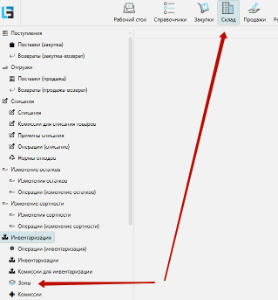 Заходим на форму Склад/Инвентаризация/ Зоны
