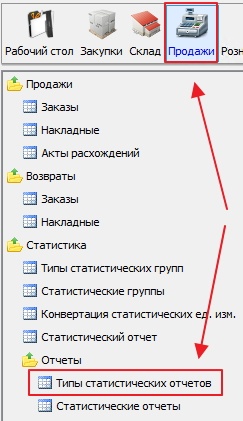 Заходим на форму "Типы статистических отчетов" - в модуле "Статистика - Отчеты" раздел "Продажи"