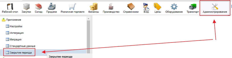 Для этого, на форме товарный отчет необходимо нажать кнопку Закрыть документы до Дата(по).