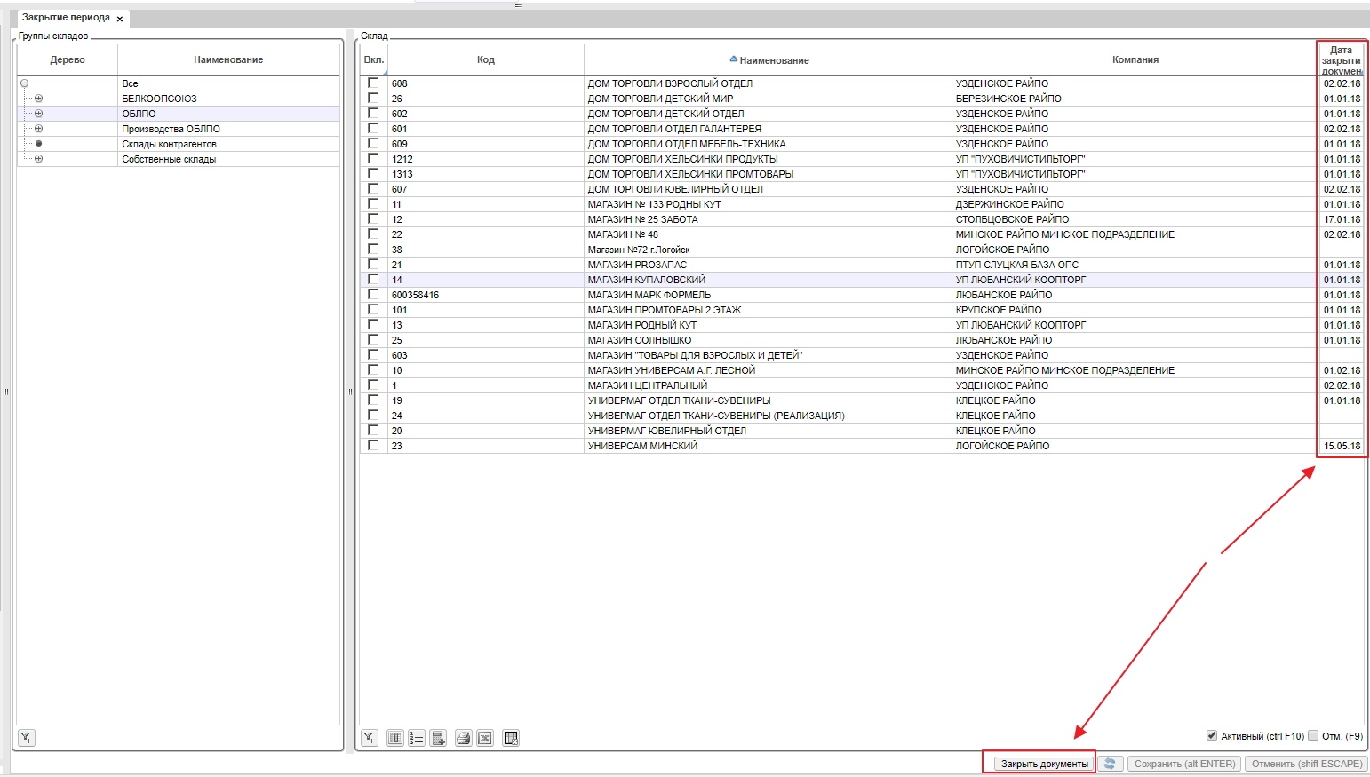 1.ввести дату в колонке Дата закрытия документов для нужного отдела, ДО(не включая введенную дату) которой будут документы помечены признаком "закрыт",