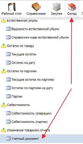 Для этого на форме Склад - Учетный документ необходимо нажать кнопку Добавить()