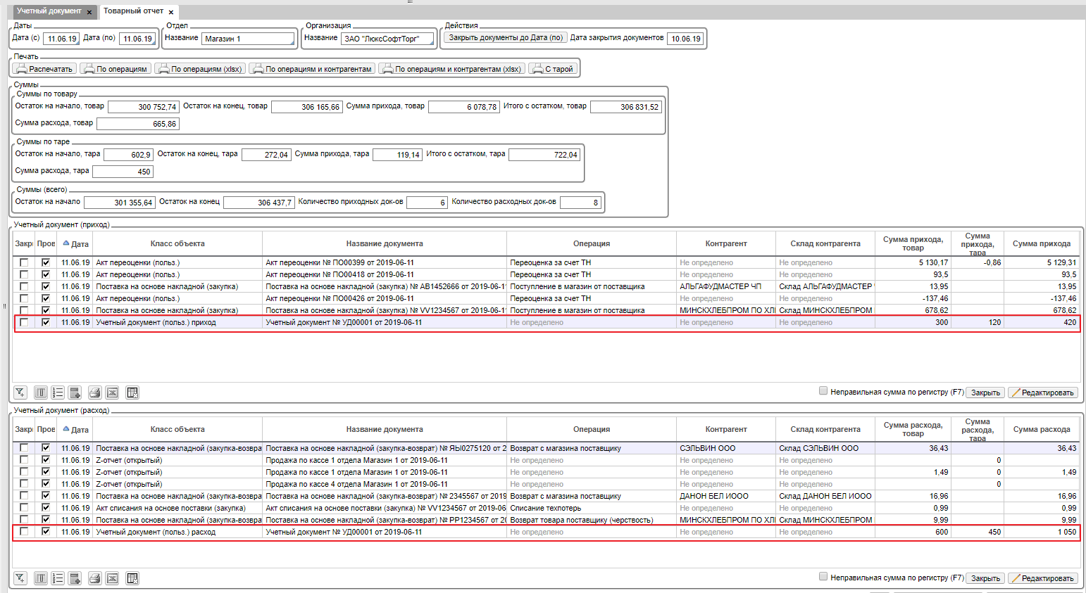 С учетом приведенного примера, данные товарного отчета будут выглядеть таким образом: