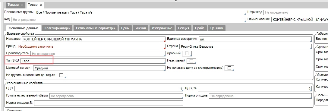 Тарой считается товар, в карточке которого в поле Тип SKU выбрано "Тара".