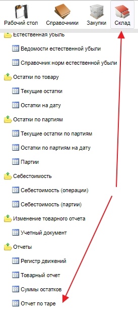 Отчет по таре формируется на форме Склад - Отчет по таре