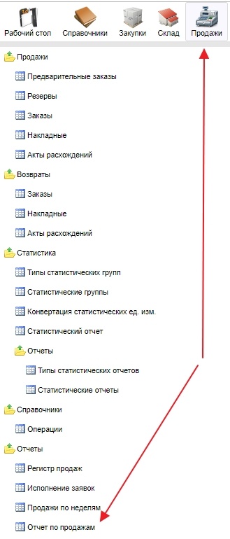 Для получения данных, необходимо ввести интервал дат, выбрать тип классификатора и отметить группы в дереве, выбрать склад.