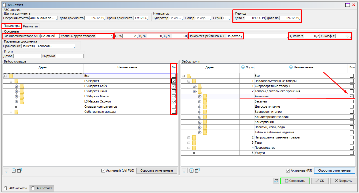 Далее определяются входные параметры для проведения ABC-XYZ анализа.