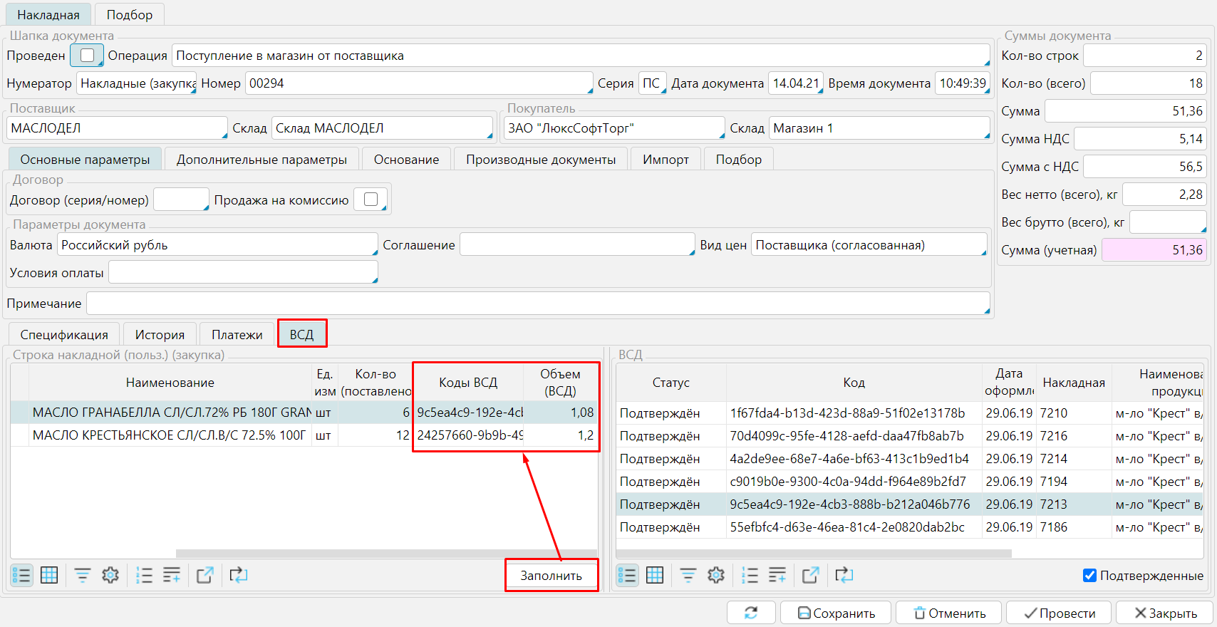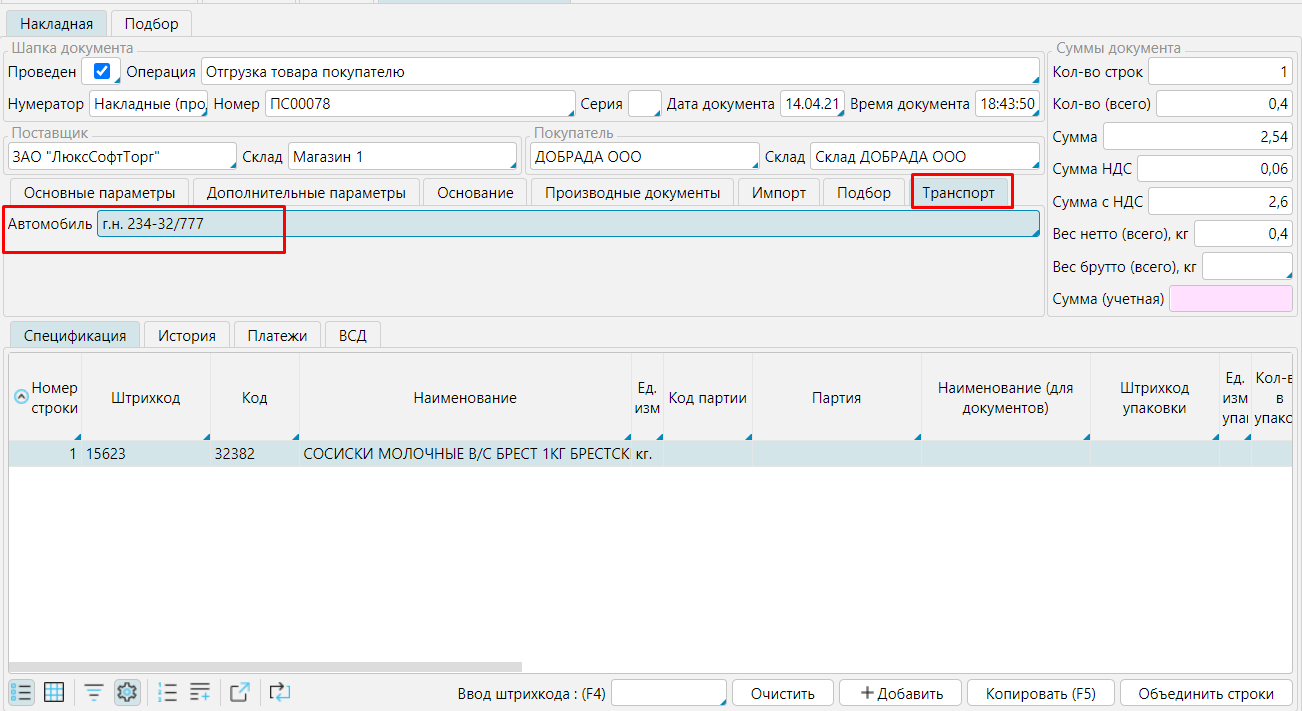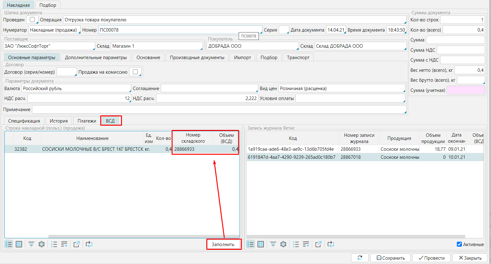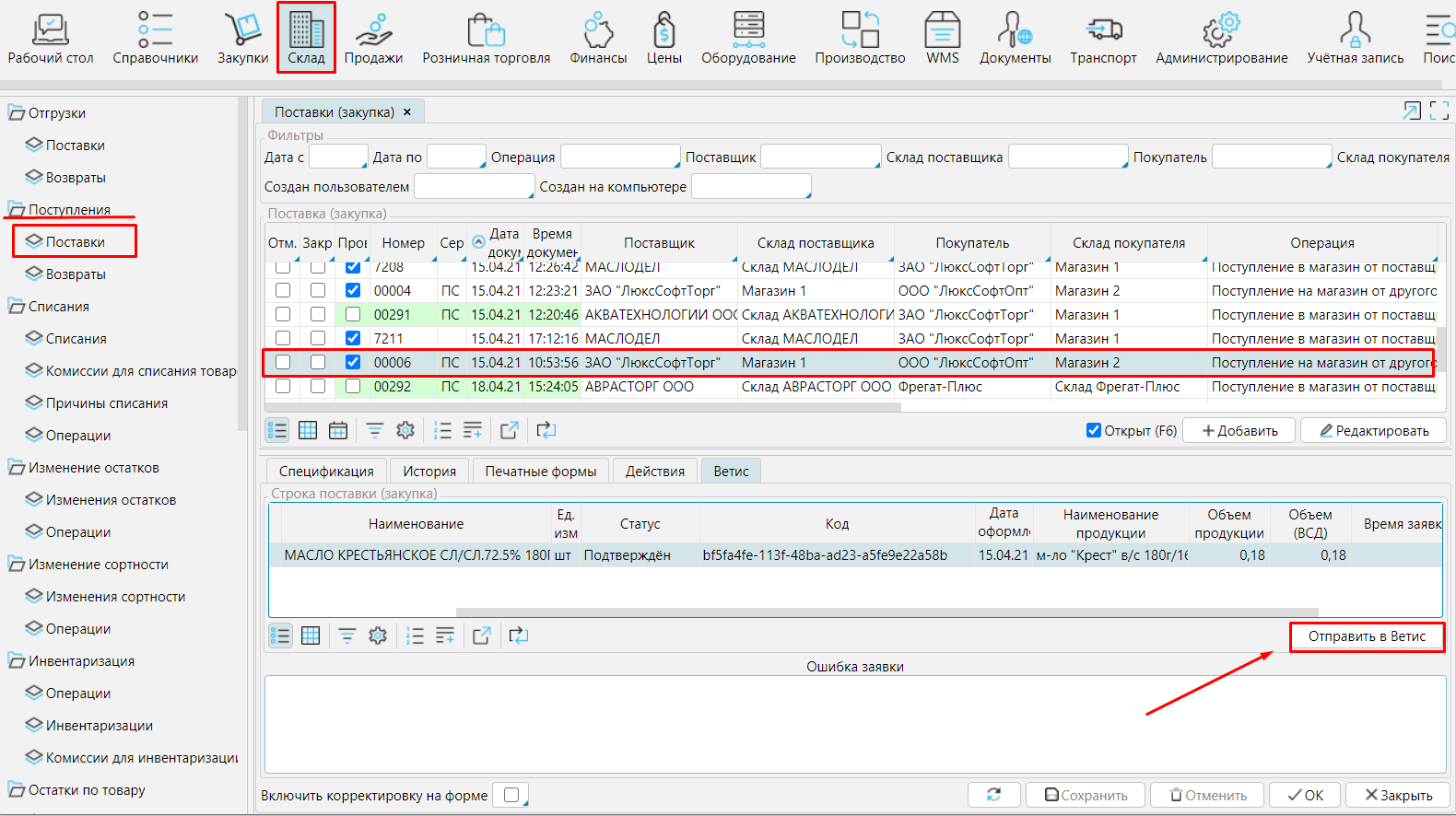 - Найти и выделить документ поставки(закупка) на форме Склад - Поступления - Поставки.